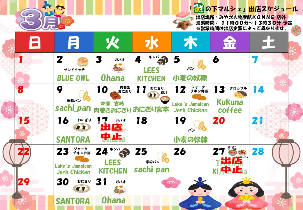 2026.3月の「み」の下マルシェ(店外イベント)予定表