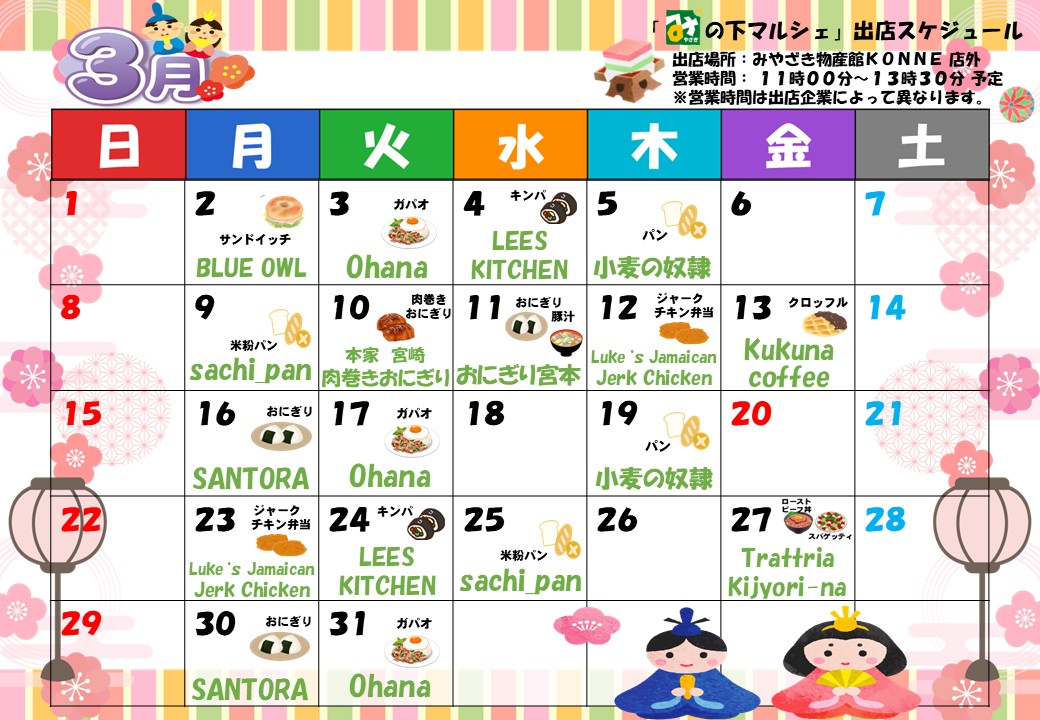 2026.3月の「み」の下マルシェ(店外イベント)予定表
