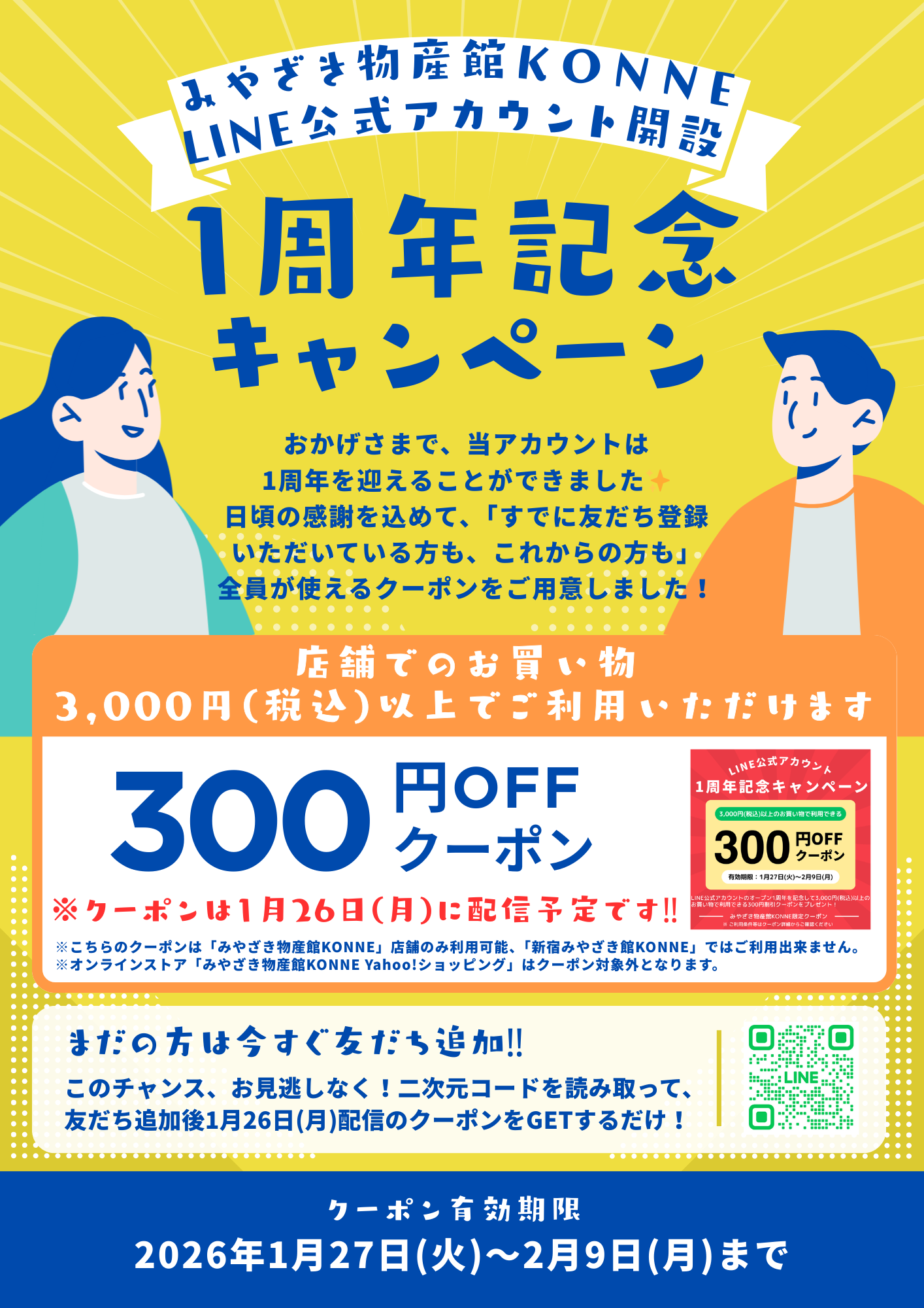 日頃の感謝を込めて、店舗でのお買い物3,000円(税込)以上でご利用できる300円OFFクーポンをご用意いたしました。